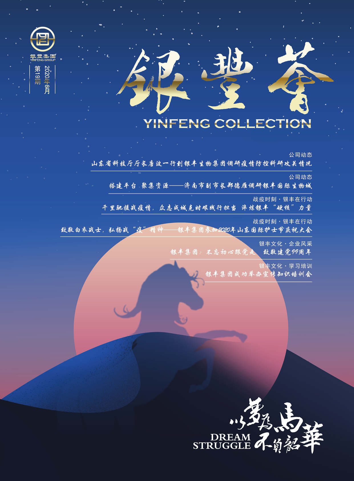 2019年,我們將迎來銀豐集團成立20周年,20年風(fēng)雨兼程,全體員工是集團發(fā)展的堅實根基,是我們持續(xù)前行的最大底氣,一路走來,我們創(chuàng)造了一個又一個奇跡,這20年里包含著每一位銀豐人的汗水和心血,未來的日子里銀豐人仍將不忘來時路,繼續(xù)向遠方奔跑,奔跑出銀豐人的氣質(zhì),滿懷信心向2019出發(fā)。